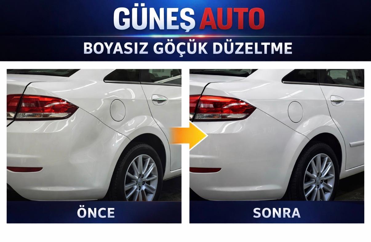 Güneş Auto olarak Mersin’de boyasız göçük düzeltme, kaporta onarım, oto boya ve pasta cila hizmetleri sunuyoruz. Uzman ekibimizle aracınızı aynı gün teslim ediyor, garantili ve kaliteli işçilik sağlıyoruz.