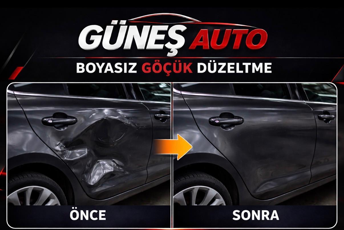Güneş Auto olarak Mersin’de boyasız göçük düzeltme, kaporta onarım, oto boya ve pasta cila hizmetleri sunuyoruz. Uzman ekibimizle aracınızı aynı gün teslim ediyor, garantili ve kaliteli işçilik sağlıyoruz.